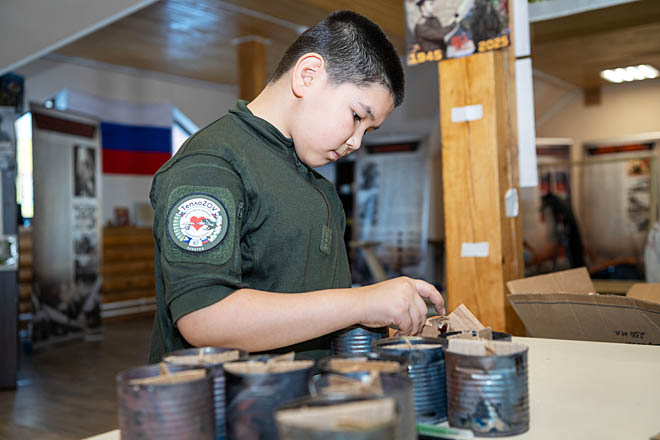 Несмотря на юный возраст, брат девушки тоже приходит вносить посильную лепту в общее дело помощи нашим воинам.